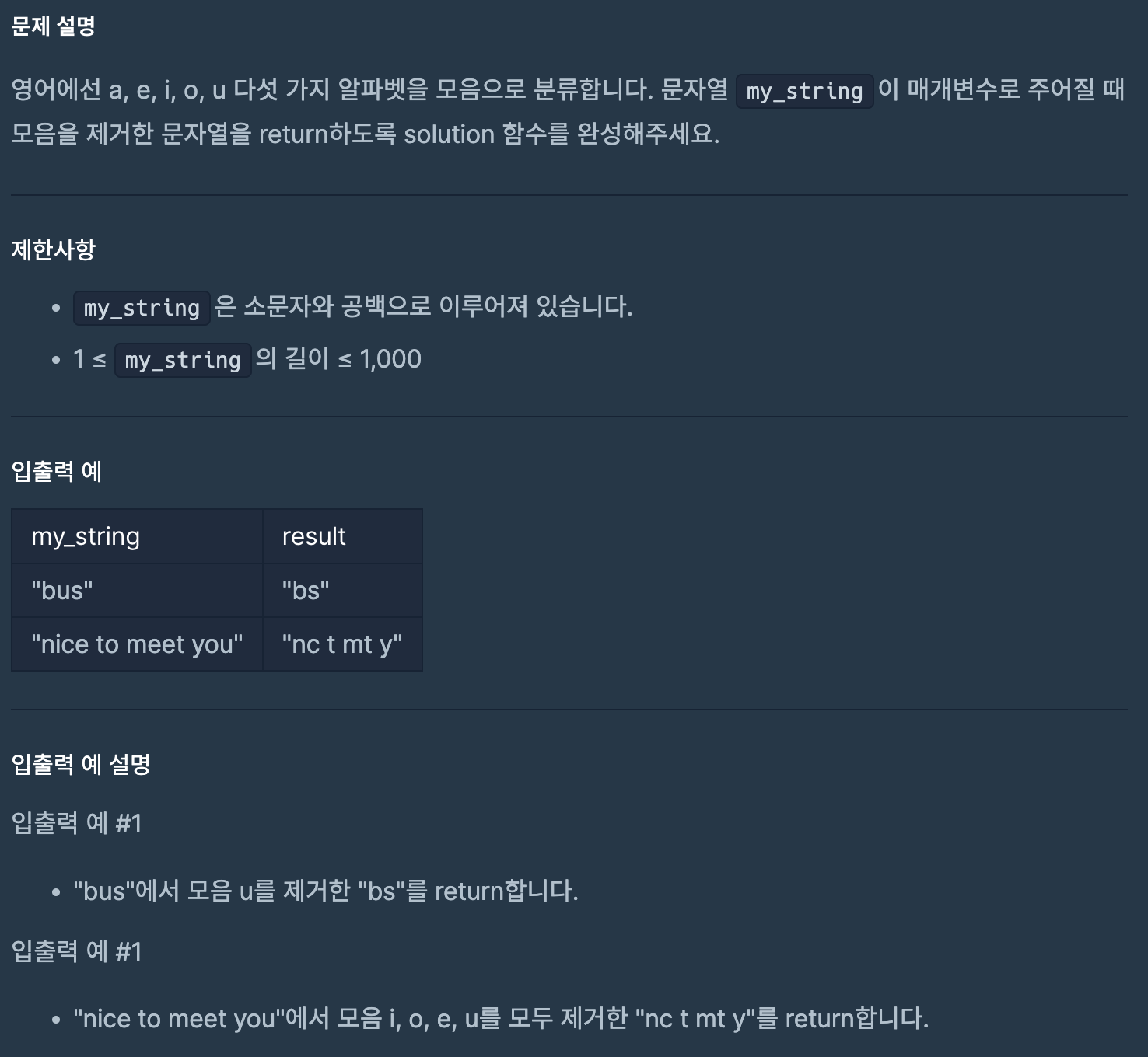 return "".join([i for i in my_string if not(i in "aeiou")])