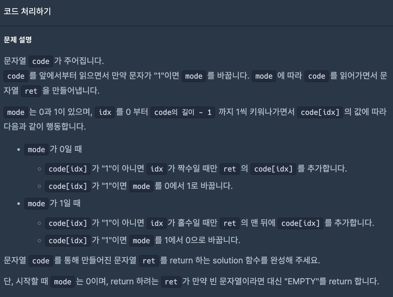 - idx가 짝수, 현재 문자(val)이 1이 아니면, 'answer'에 해당 문자를 추가