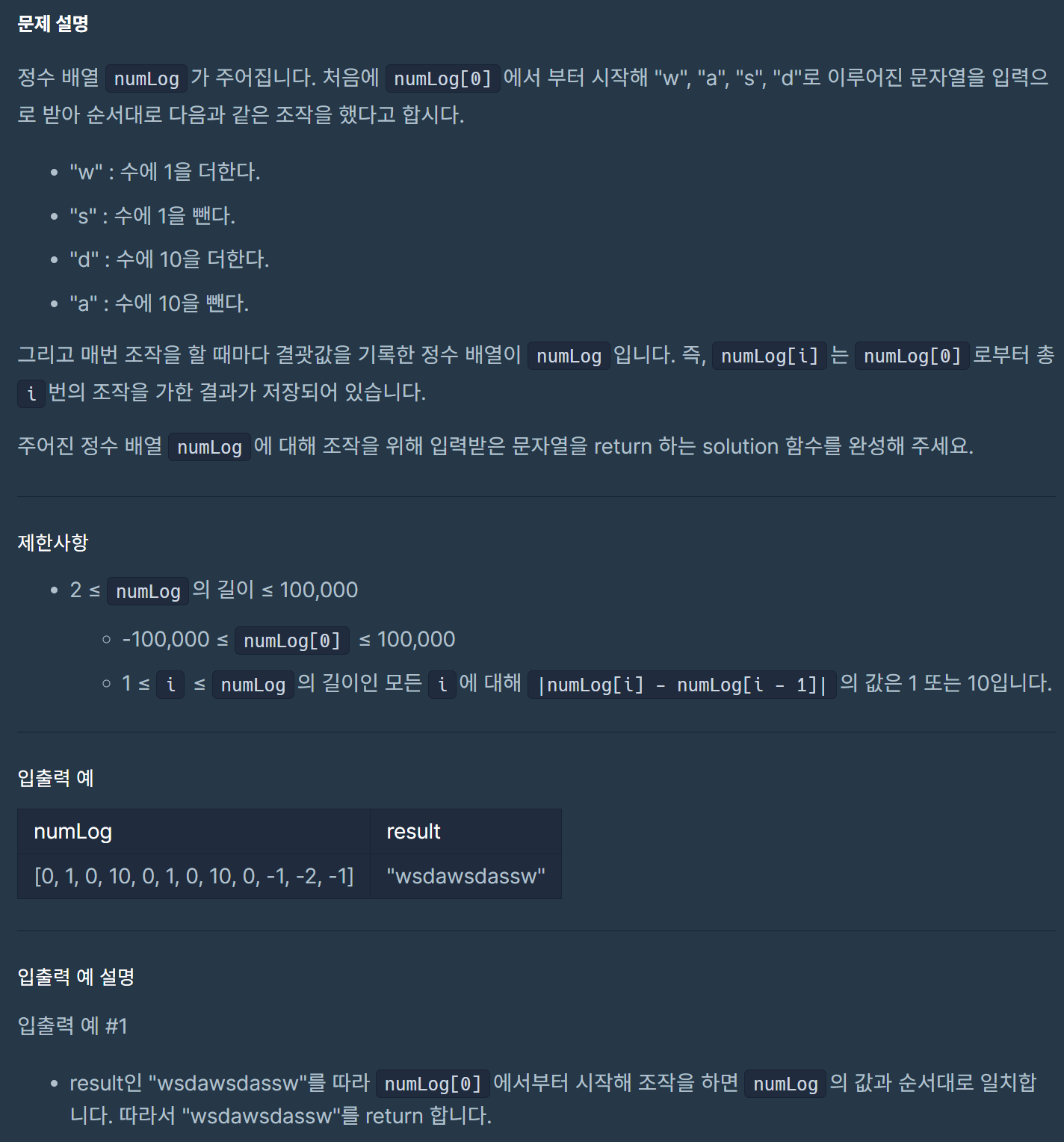 dic = { 1: "w", -1: "s", 10: "d", -10: "a" }