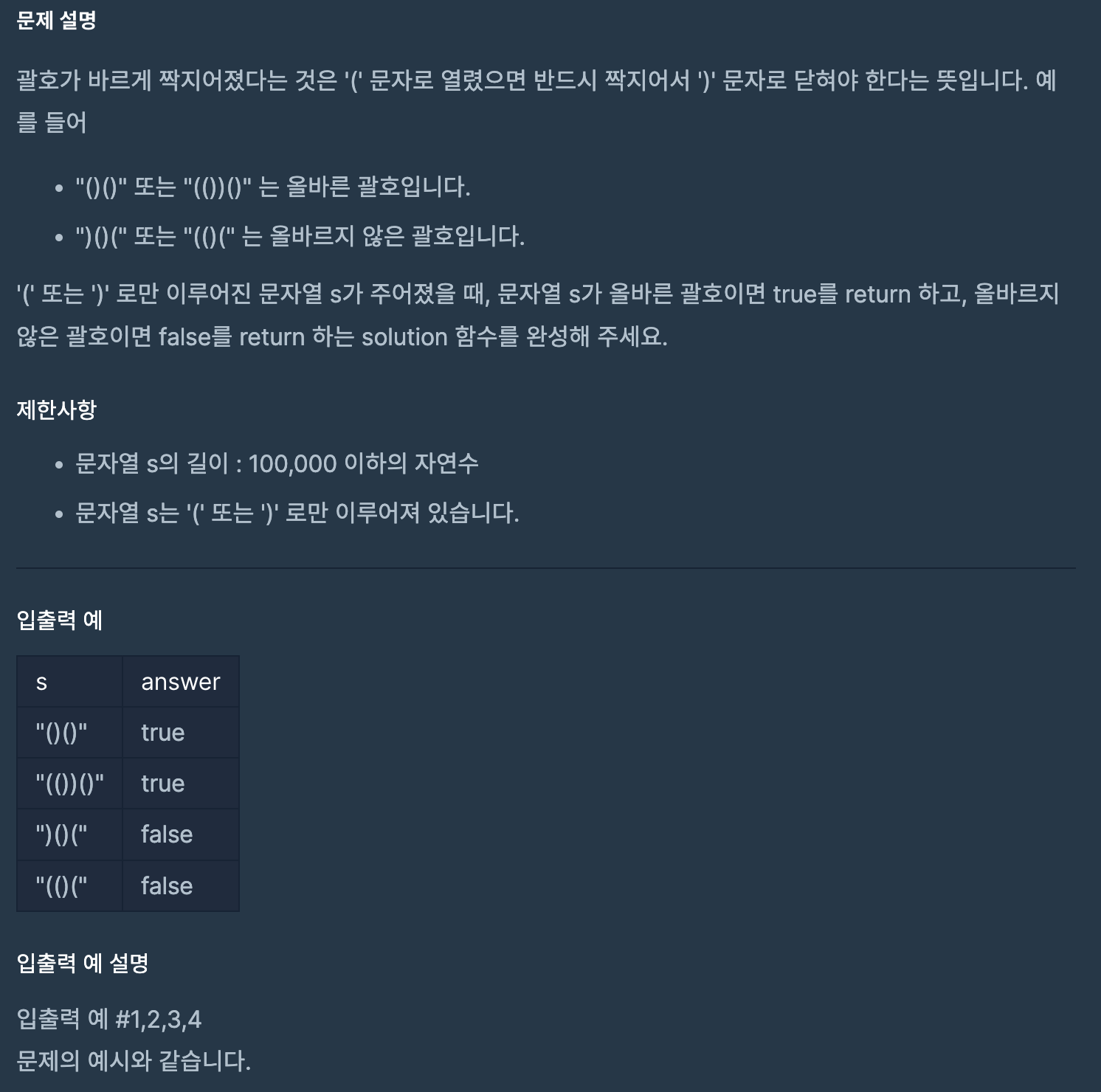 - 한쌍의 올바른 괄호가 나오면 pop으로 '('을 제거