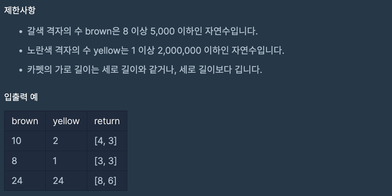 https://school.programmers.co.kr/learn/courses/30/lessons/42842