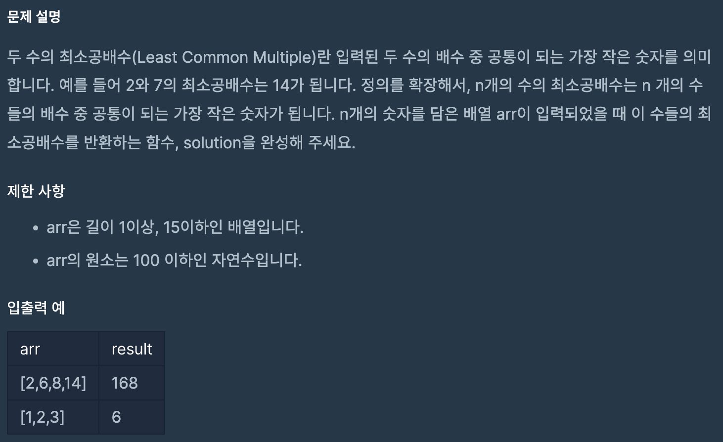 - 누적 값을 이용해 루프로 최소 공배수 찾기
