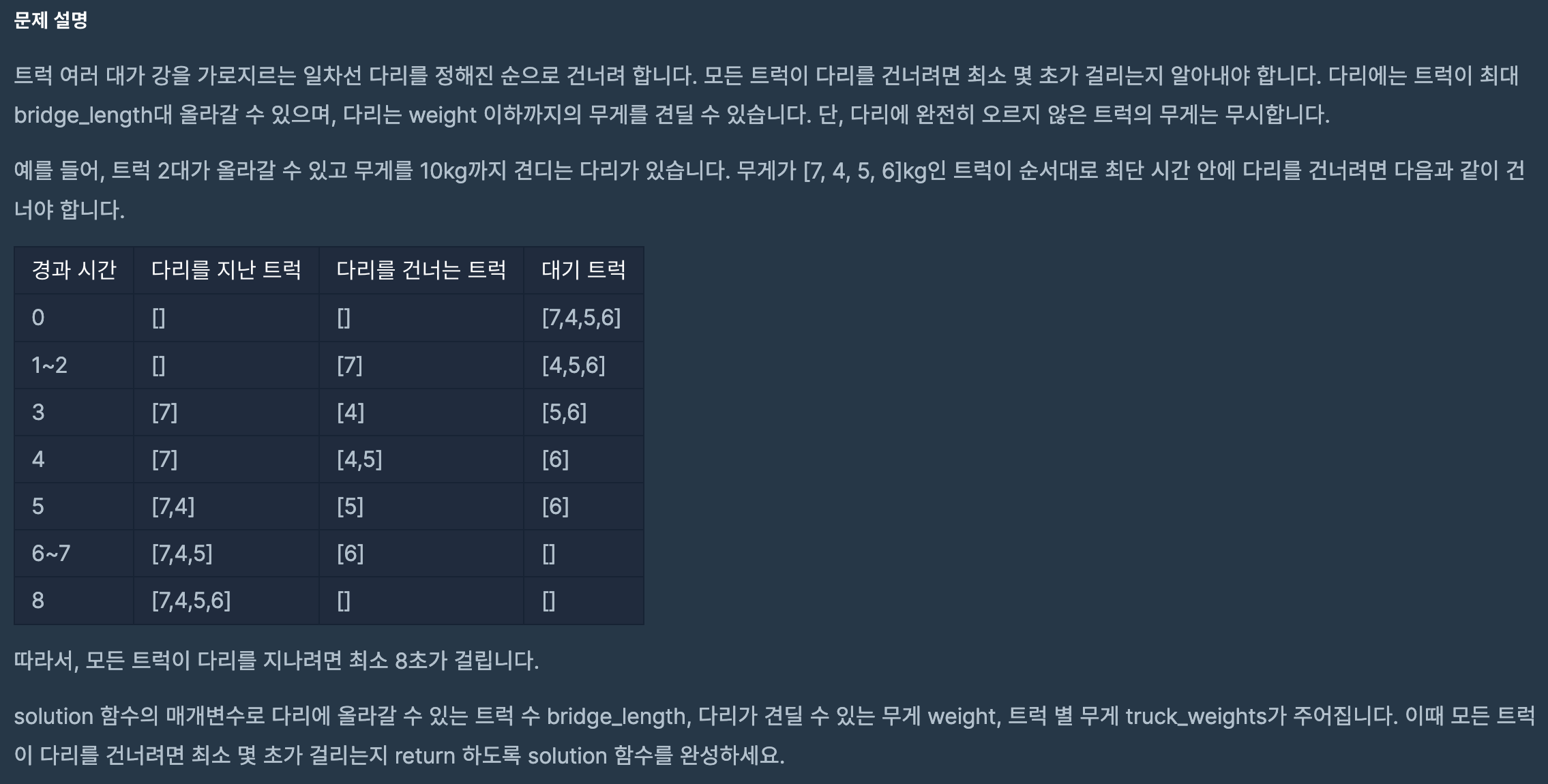 https://school.programmers.co.kr/learn/courses/30/lessons/42583?language=python3