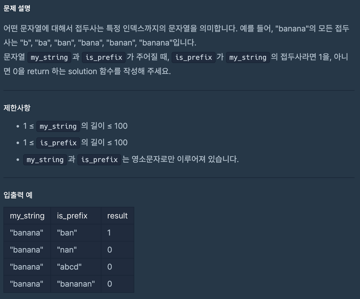 | [프로그래머스] 접미사인지 확인하기 - 파이썬 (0) | 2024.03.18 |