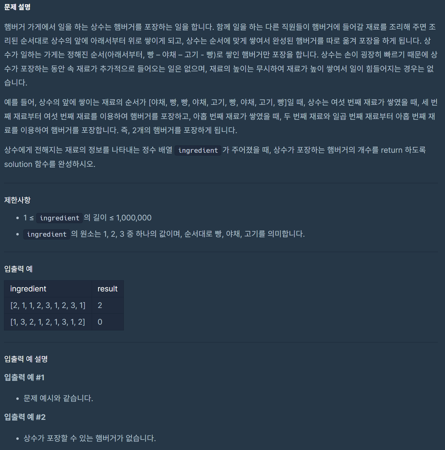[프로그래머스] 햄버거 만들기 - 파이썬